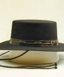 We are proud to replicate this iconic hat in the best materials available. Like all our hats this replica is handmade in wool felt. The leather used for the hatband is hand cut, dyed, and tooled to match the original. To further authenticate this look.