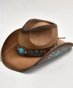 This Western hat is made by hand from high-quality Panama straw in a tradition-consciously authentic shape. It wins over the wearer qualitatively with summery lightness and the flexible, slightly airy workmanship. The visual arguments of the straw hat are the subtle heathered design and the colourful patterned trim band made of fabric with side bow and brand pin, which is shown off to excellent effect on it.