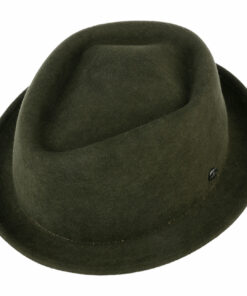Timeless and with no-frills, this compact pork pie with diamond-shaped crown knows how to impress. The narrow-brimmed hat is made of crushable and water-repellent wool felt and will win you by its appearance and also its complete functionality. Entirely without grosgrain ribbon trim and brand pin, the small wool hat certainly has the makings of a classic.