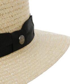 With its elegant colour contrast, the traveller hat can definitely be worn on special occasions on warm summer days. The easy-care viscose material is also known as Toyo straw, thanks to its special look. It gives the hat a light and airy charm that is perfectly complemented by the flat brim. The wide grosgrain ribbon provides the classic frame.