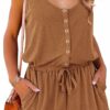 - Material: Crafted from a blend of 60% cotton and 40% polyester, this summer romper features spaghetti straps. The fabric is soft, comfortable, stretchy, lightweight, and breathable, making it a perfect choice for summer days.