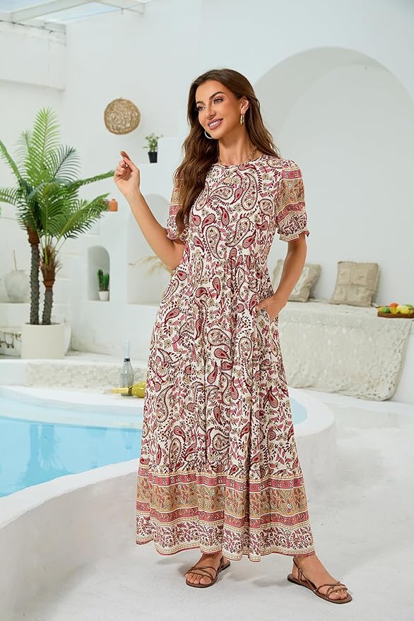 - THOUGHTFUL DETAILS WITH BOHO CHARACTER Created for moments when comfort and style matter equally, this dress includes puff sleeves, a tiered skirt, and convenient side pockets for small essentials like a phone or keys. The soft structure and floral print come together for an effortless, vacation-inspired feel without feeling overdone.