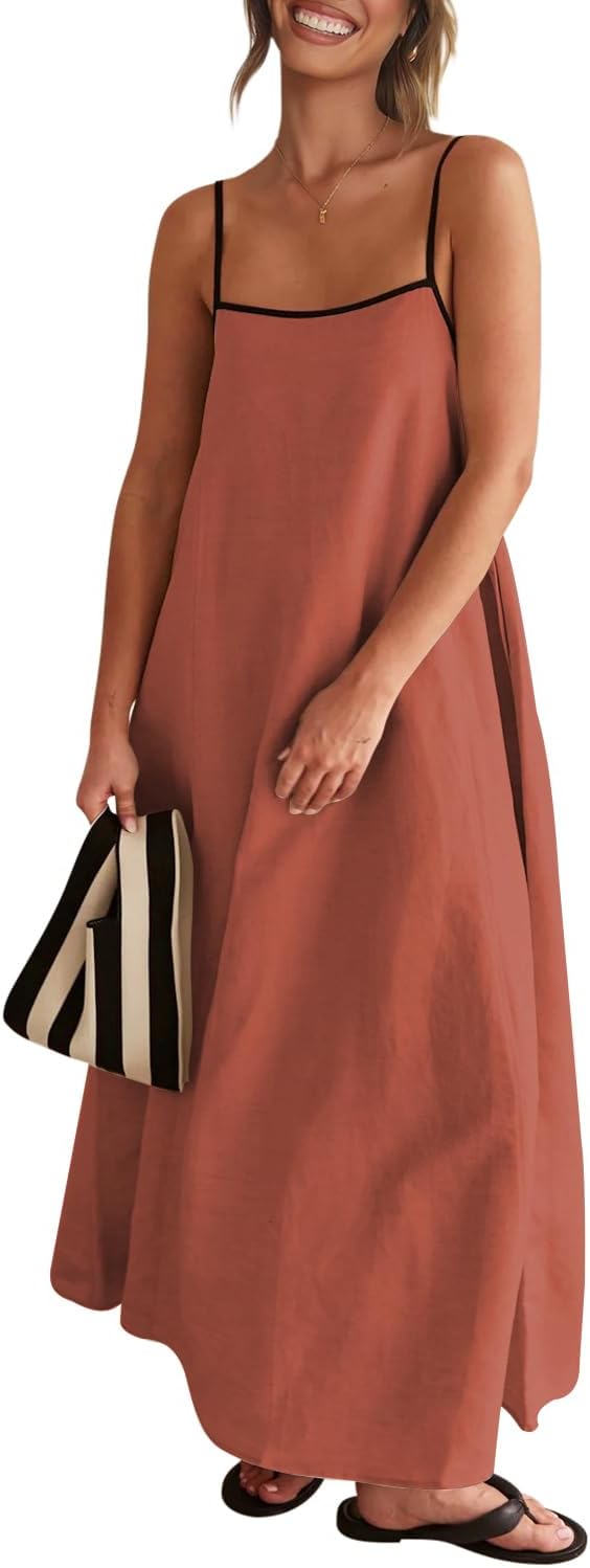 - MATERIAL: This maxi dresses for women is made of a lightweight blend of linen, ensuring exceptional comfort and breathability; soft & stretchy material, ensuring a great wearing feeling, while thanks to the moderate thickness, it will not see through