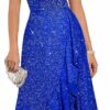 - Sparkly Fabric: This formal wedding guest dress is made from stretchy and comfortable glitter fabric embellished with small sequins, giving it a luxurious feel and ensuring you look charming. The adjustable straps offer a flattering fit for any body type