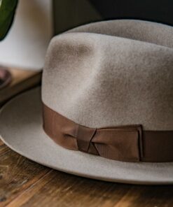 This striking, stylish fedora is made of 100% firm wool felt. It features a 4 1/2″ teardrop crown and a 3″ bound-edge flat brim. Additional details include a braided hat band and a feather detail.