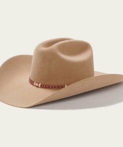 The Deadwood, a premium wool cowboy hat boasting a classic cattleman’s silhouette with a taller, 4 5/8″ crown and curved 4″ brim. This high-quality hat is adorned with refined accents like a 3-piece silver buckle on the matching hatband. Stay cool and comfortable with the leather interior sweatband. Elevate your Western style with the Deadwood cowboy hat, where quality meets elegance.