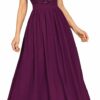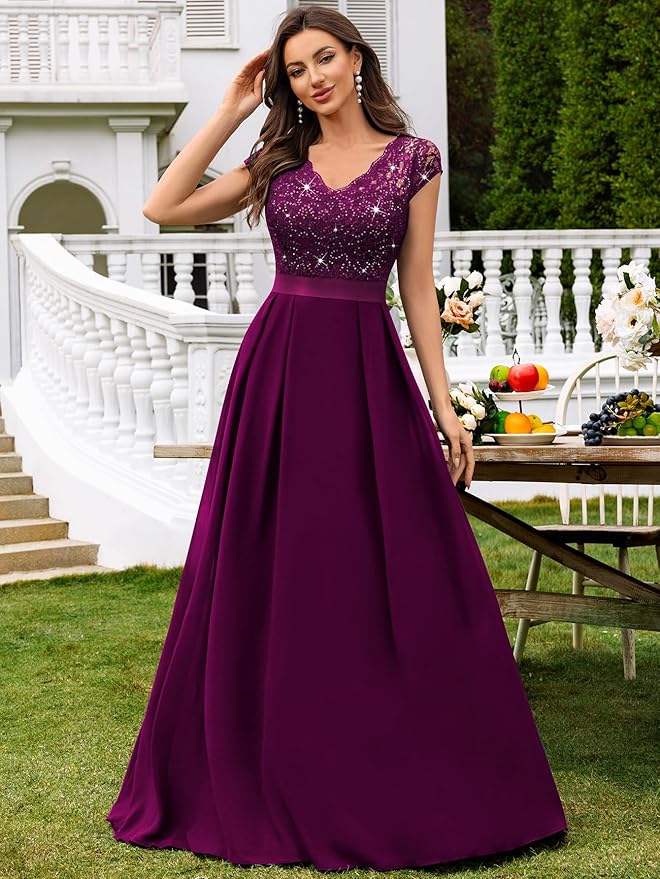 - FEATURES: Elegant V Neck with lace trim, See-through Lace Patchwork Chiffon Hem, Cap Sleeve, A-Line, Maxi Dress.