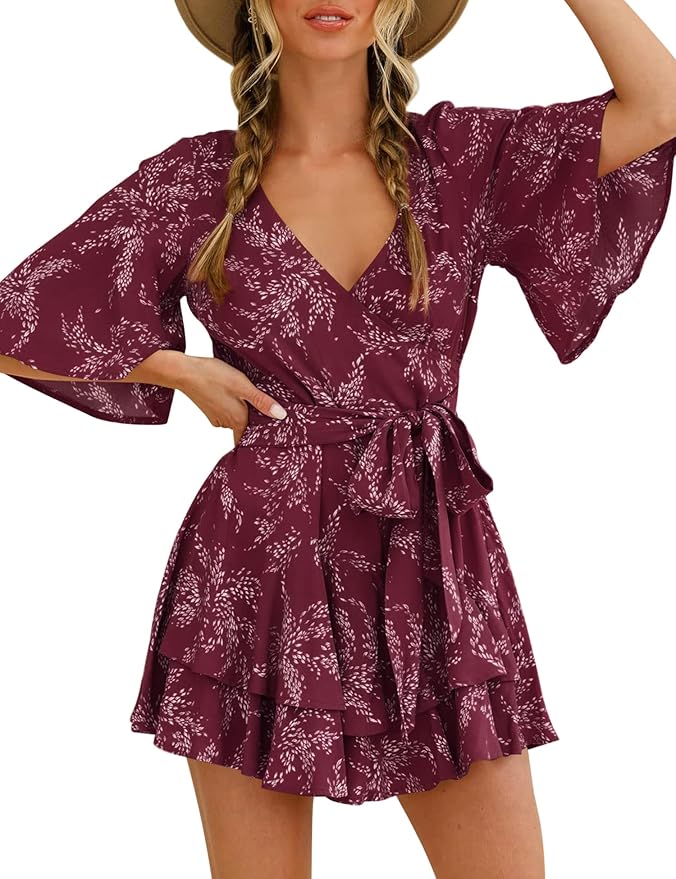 - Material: This floral summer romper is made of high quality polyester, which has the characteristics of lightweight, soft, good elasticity, breathable and skin-friendly, comfortable to wear and touch. Hand or machine wash, easy to wash and quick dry. This is the must-have romper for this summer.
