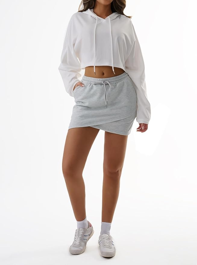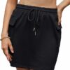 - Features: Skirt with pockets features with solid color design, high waisted, cargo pockets, mini, drawstring, adjustable waist,casual athletics style