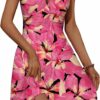 - 【Easy-care Fabric】Solid:95% Cotton 5% Spandex;Floral:95% Polyester 5% Spandex. Made from soft, breathable, stretchy, skin-friendly, not see-though and lightweight fabric. This knee-length dress dosen’t wrinkle and it packs so easy for travel!