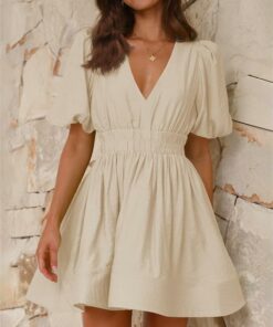 - 【Eye-catching V-Neck】Our summer dresses for women boast a Deep V Neck that highlights your natural grace, drawing attention to an elegant neckline. Ideal for curvy women. If you’re concerned about potential slips, you can use garment tape at the neckline to keep your outfit refined, classy and elegant all day long.